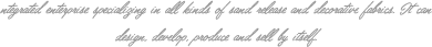 從事各類沙發(fā)布、裝飾布的工貿一體化企業(yè),可自行設計、開發(fā)、生產(chǎn)、銷售。